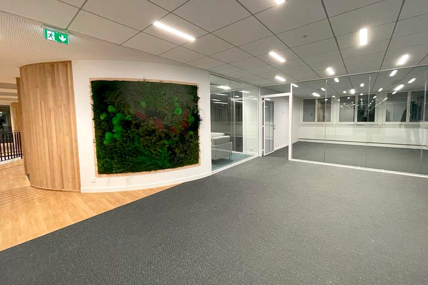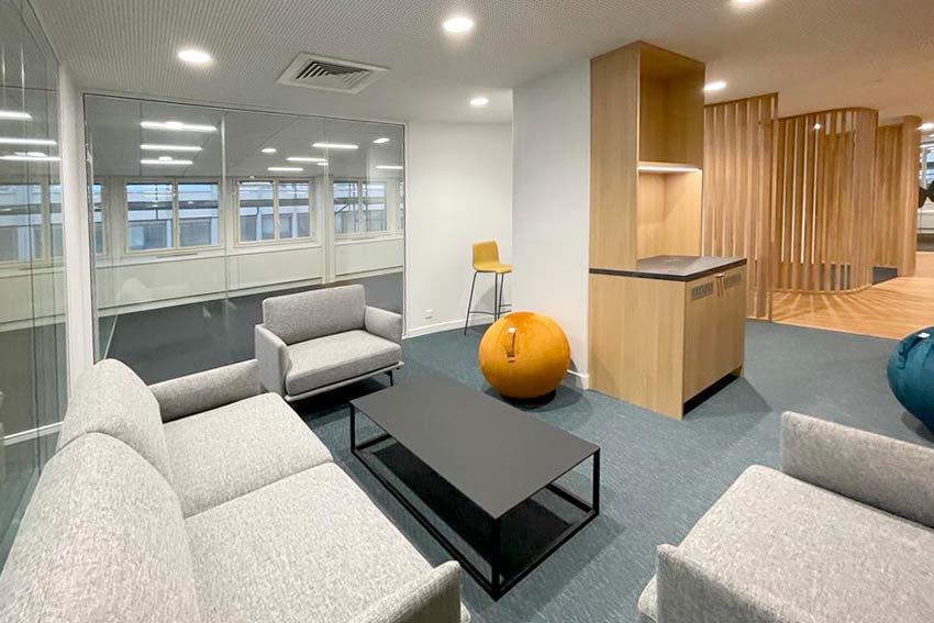 Modernisation complète d’un ensemble de bureaux de grande superficie, situé dans un immeuble tertiaire en cœur de ville.